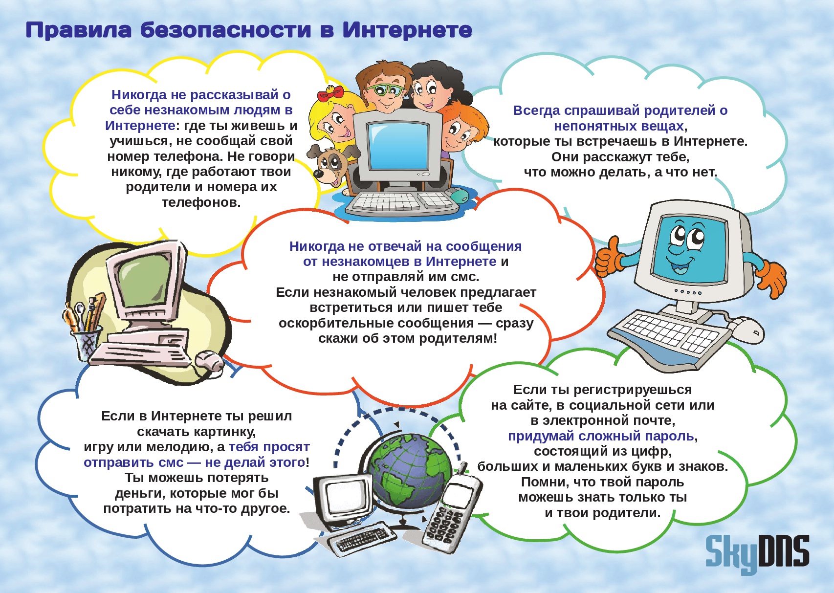 • Объясните детям, что ни в коем случае нельзя использовать сеть для хулиганства, распространения сплетен или угроз другим людям.