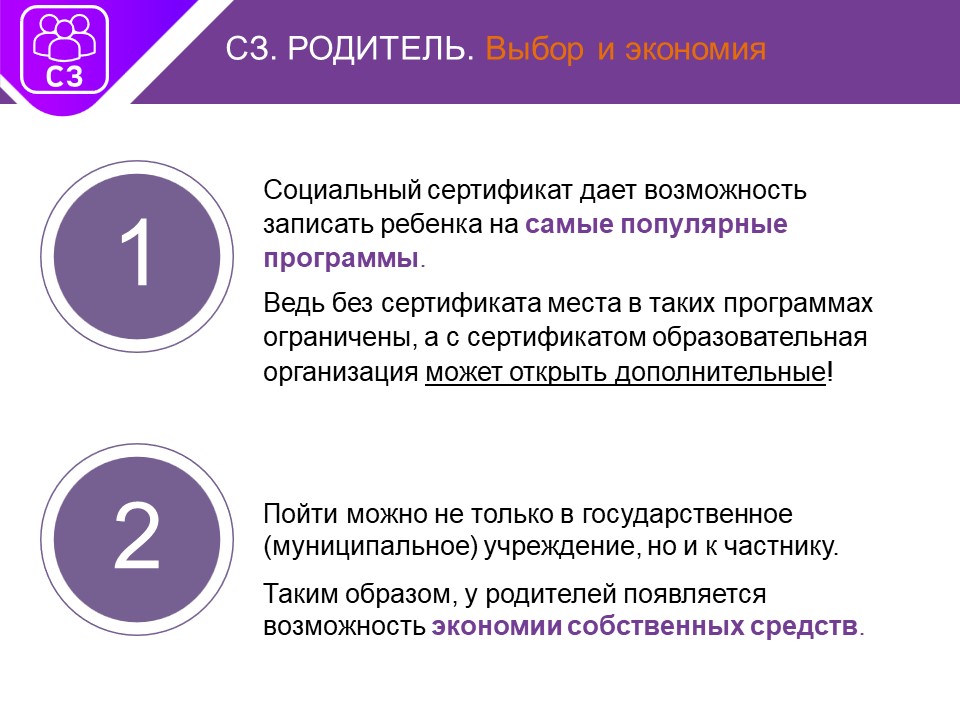 В контексте дополнительного образования детей социальный сертификат выполняет все функции сертификата персфинансирования и даже имеет некоторые преимущества перед последним. В дальнейшем применение социального сертификата станет возможно и для оплаты других социально-значимых услуг. Срок действия сертификата не изменился, он действует до наступления 18-летия ребенка и дает право посещать любые лицензированные кружки или секции, размещенные на сайте Навигатора ДО, за счет бюджета.